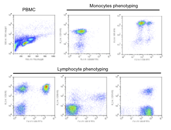 Figure: Caracteritzation of monocitic and lymphocytic population in healthy and pathological donors.