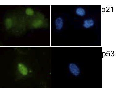 Figure: Accumulation of p21 and p53 within senescent endothelial cell nucleis.